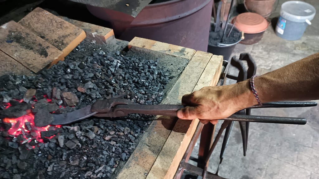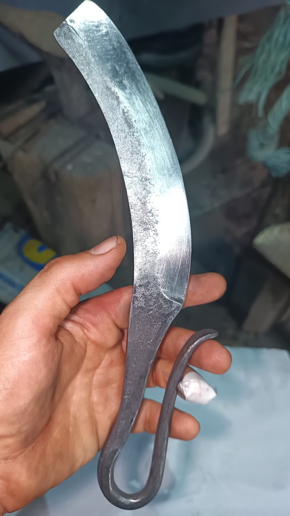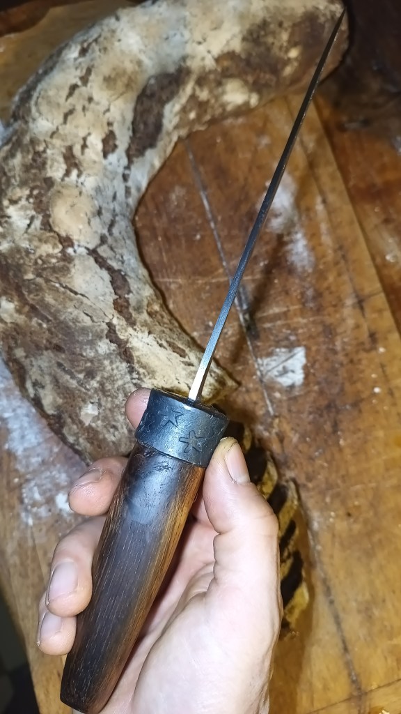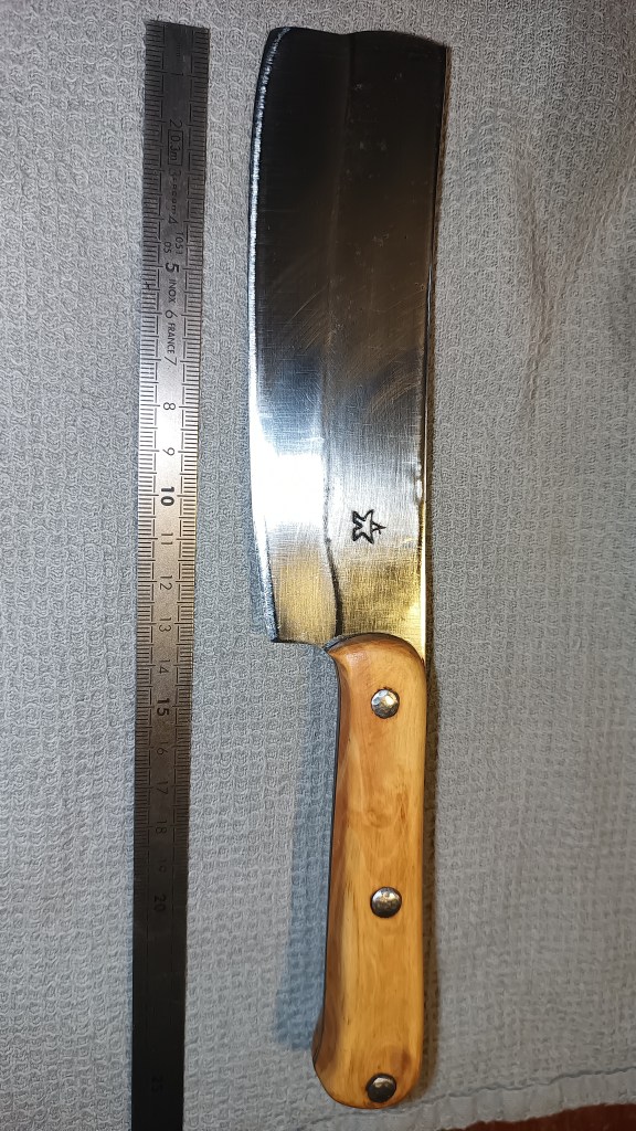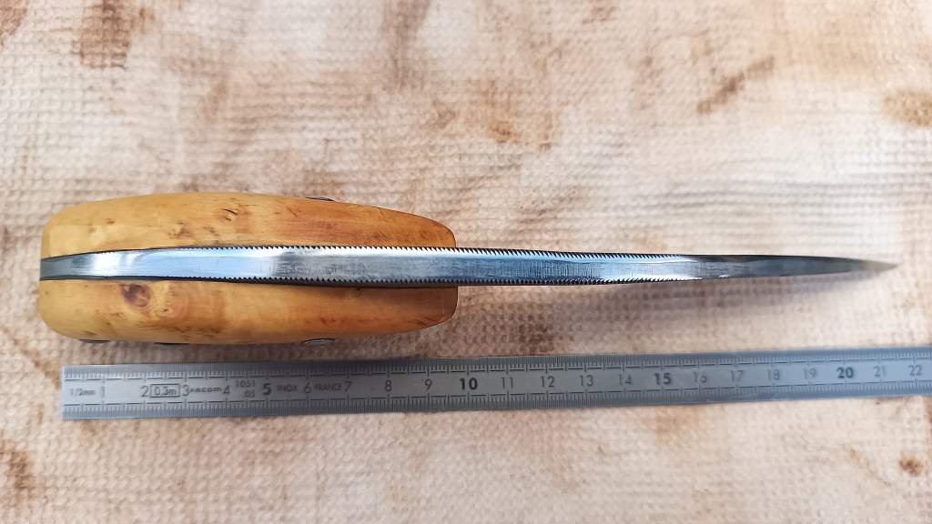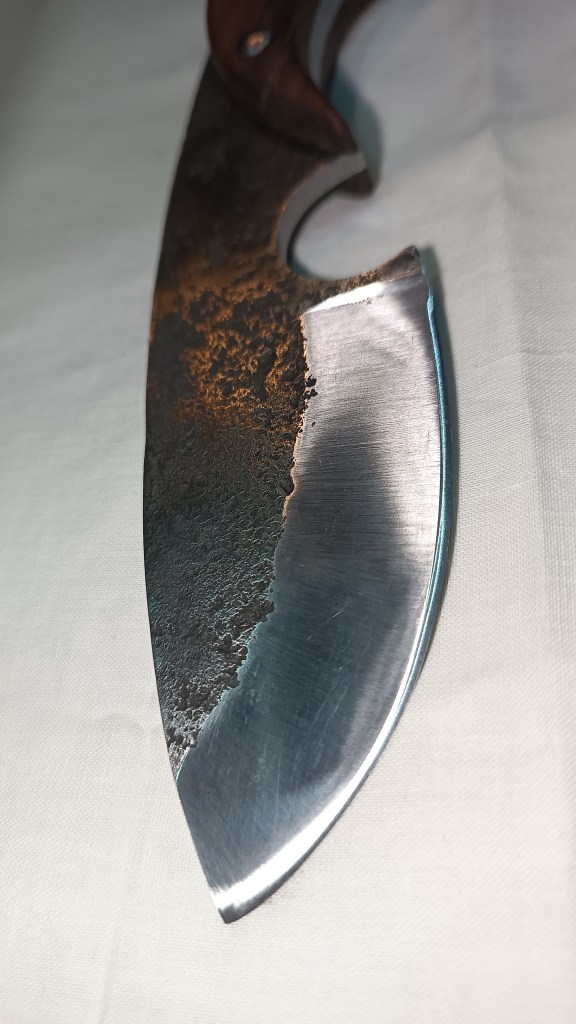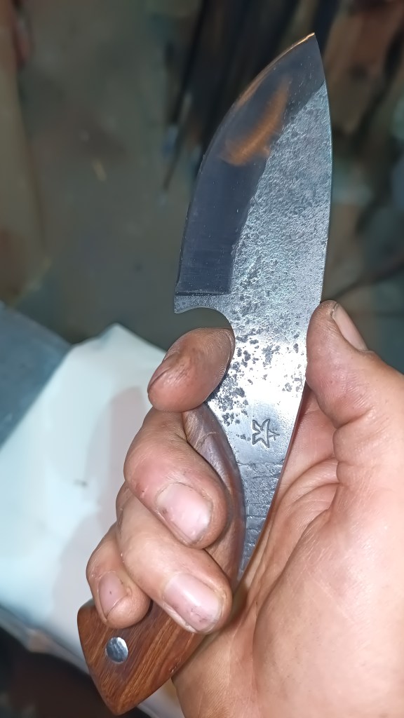 Couteau de style médiévalFeuilleBijou de couBijou initialeCouteau d’inspiration Japonaise – KiridashiManche en buisCouperetPoinçonRivetage à têtes débordantesTenailles de forgeManche en ormeCouteau d’office – manche en pêcher et ébèneSupport de couteauCouteau forgé dans un boulon